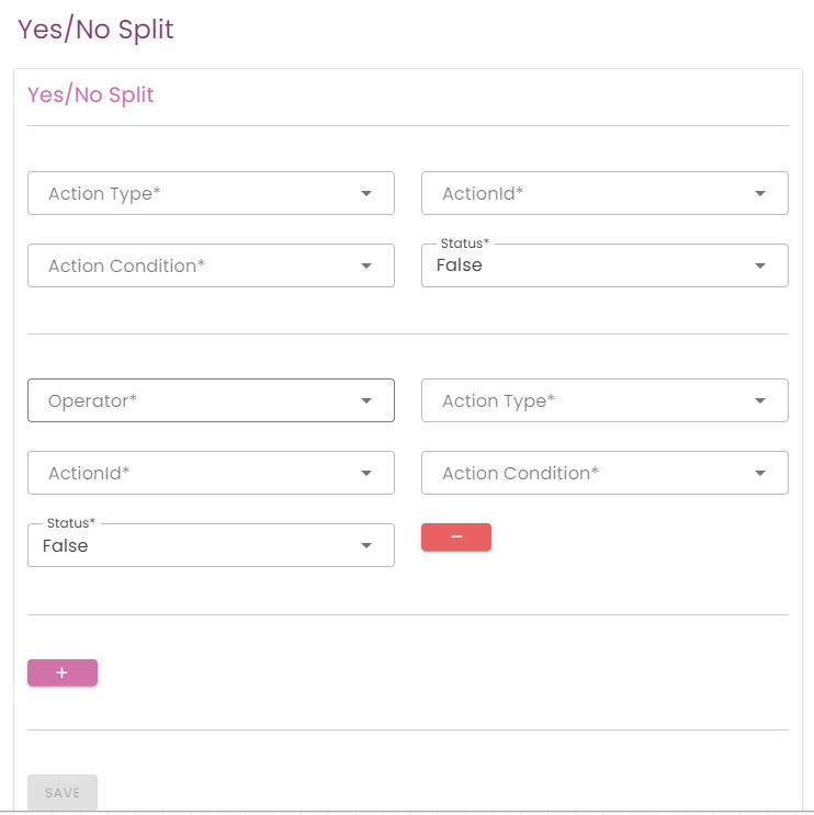 This refers to a decision point in the workflow where there are two distinct paths based on an outcome: "Yes" or "No". At this juncture, the user must make a choice based on a specific condition or criteria. If the condition is met (true), the "Yes" path is taken; if the condition is not met (false), the "No" path is followed. This type of split is used to handle different scenarios or outcomes based on a singular decision point.