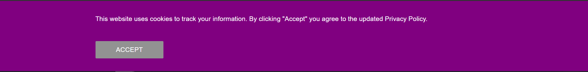 <div class="cookie-consent-banner__description" style="font-family: sans-serif, arial; font-weight: normal; color: #fff; font-size: 16px; line-height: 24px;">This website uses cookies to track your information. By clicking "Accept" you agree to the updated Privacy Policy.